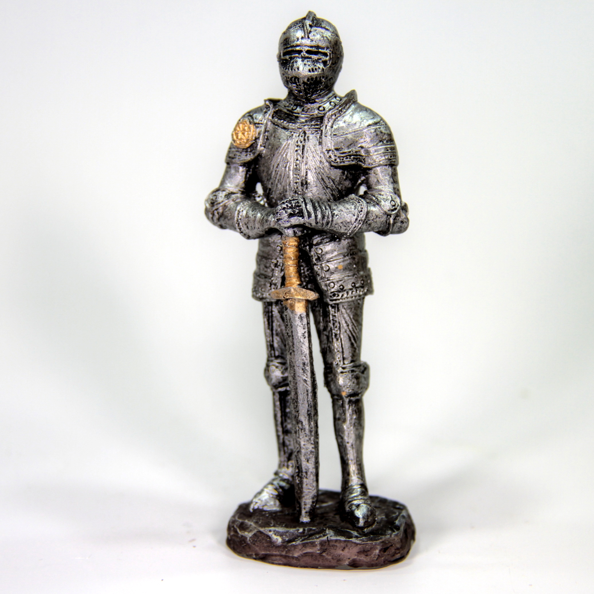 Декоративна статуетка лицаря, зроблена зі штучного каменю і вручну пофарбована.