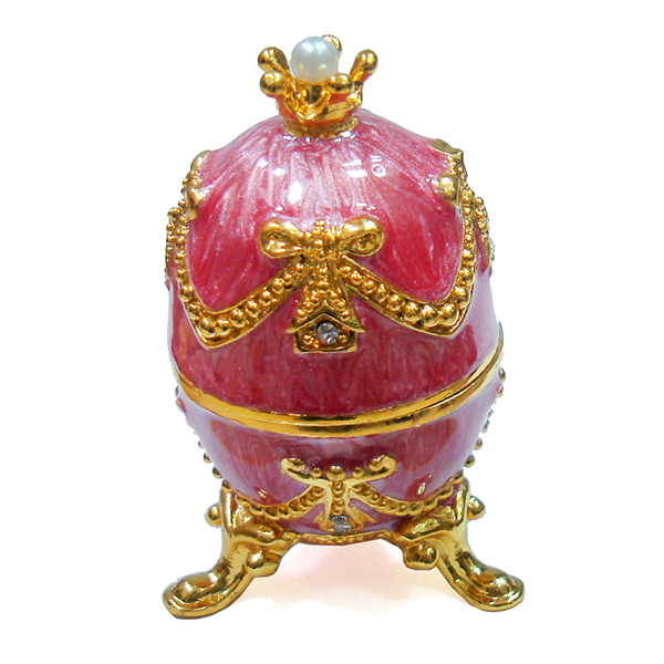 Розкішна шкатулка - яйце в стилі Фаберже виготовлено з латуні, покрито холодною емаллю і інкрустовано стразами.