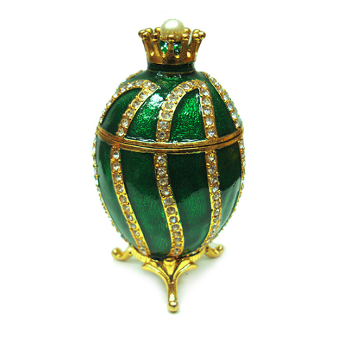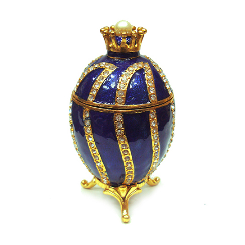 Розкішна шкатулка - яйце в стилі Фаберже виготовлено з металу, покрито холодною емаллю і інкрустовано стразами.
