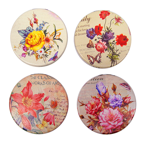 Дзеркало металеве з оздобленням зі штучної шкіри двостороннє кругле на магніті з різними зображеннями кольорів.